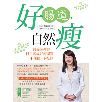 好腸道,自然瘦:營養師教你日日養成好瘦體質,不便秘、不復胖購買網址:http://www.books.com.tw/exep/assp.php/87926/products/0010641655?utm_source=87926&utm_medium=ap-books&utm_content=recommend&utm_campaign=ap-201702